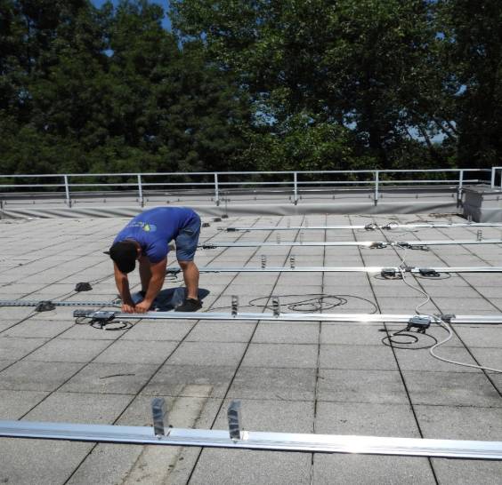 U sklopu donacije solarne elektrane Regionalnom centru kompetentnosti Ruđera Boškovića, korištena je montažna konstrukcija Renusol FS Pro 10-EW, posebno dizajnirana za ravne krovove bez potrebe za bušenjem. Ovaj balastni sustav omogućuje montažu modula u smjeru istok–zapad, što optimizira korištenje sunčeve energije tijekom cijelog dana.